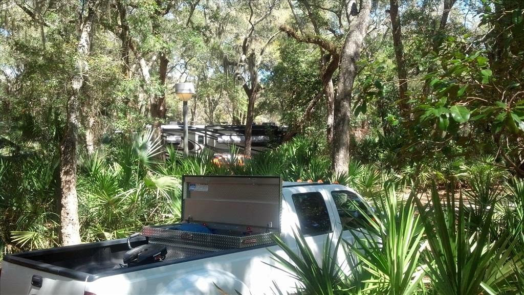 Although woodsy, there was plenty of room. I could have parked two duallys and car on the site! As it was, a good friend, John Stewart, came to visit and spent the night. No problem, plenty of parking!